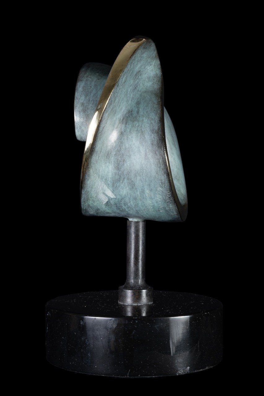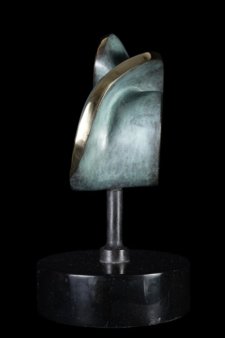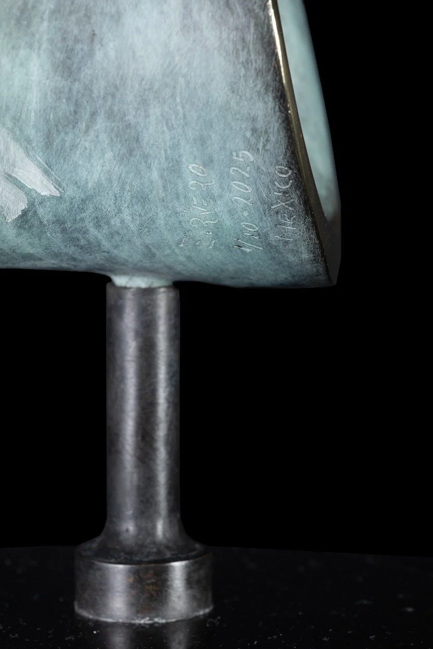 2025Bronce a la cera perdida28 x 18 x 9 cm Patina Azul con Acentos Pulidos Base de Mármol Negro Serie a 20