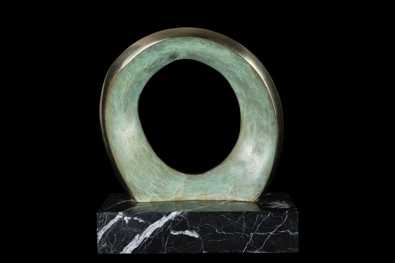 2025 Bronce a la cera perdida34 x 18 x 8 cm Patina Verde & Acentos Pulidos Base de marmol negraSerie a 20